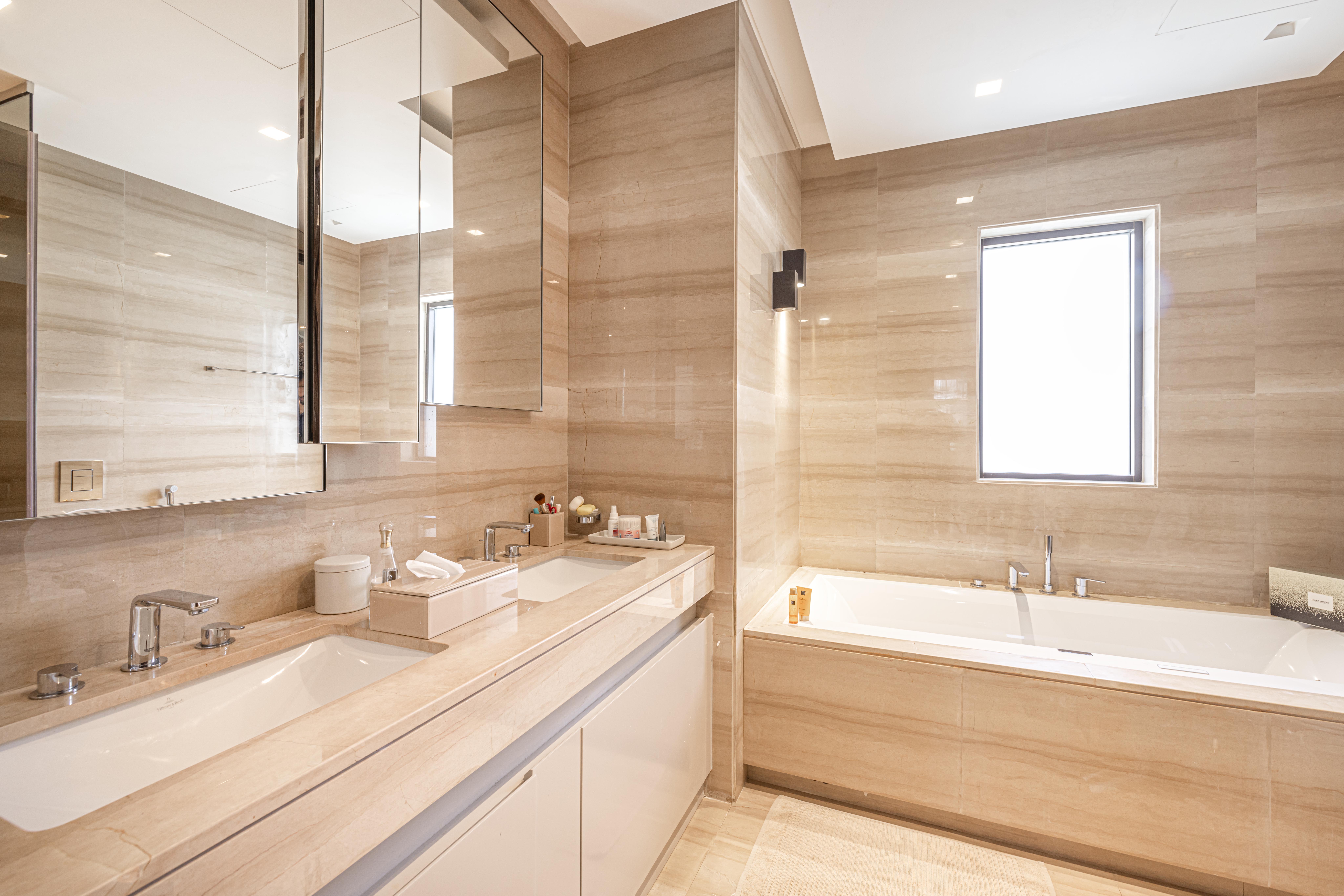 The kitchen was designed using a high-quality marble-effect material, chosen not for imitation but for its ability to deliver a luxurious visual effect with greater durability and practicality for daily use. Bathrooms were fully renovated with premium wall finishes, clean layouts, and a refined palette that balances elegance with functionality.