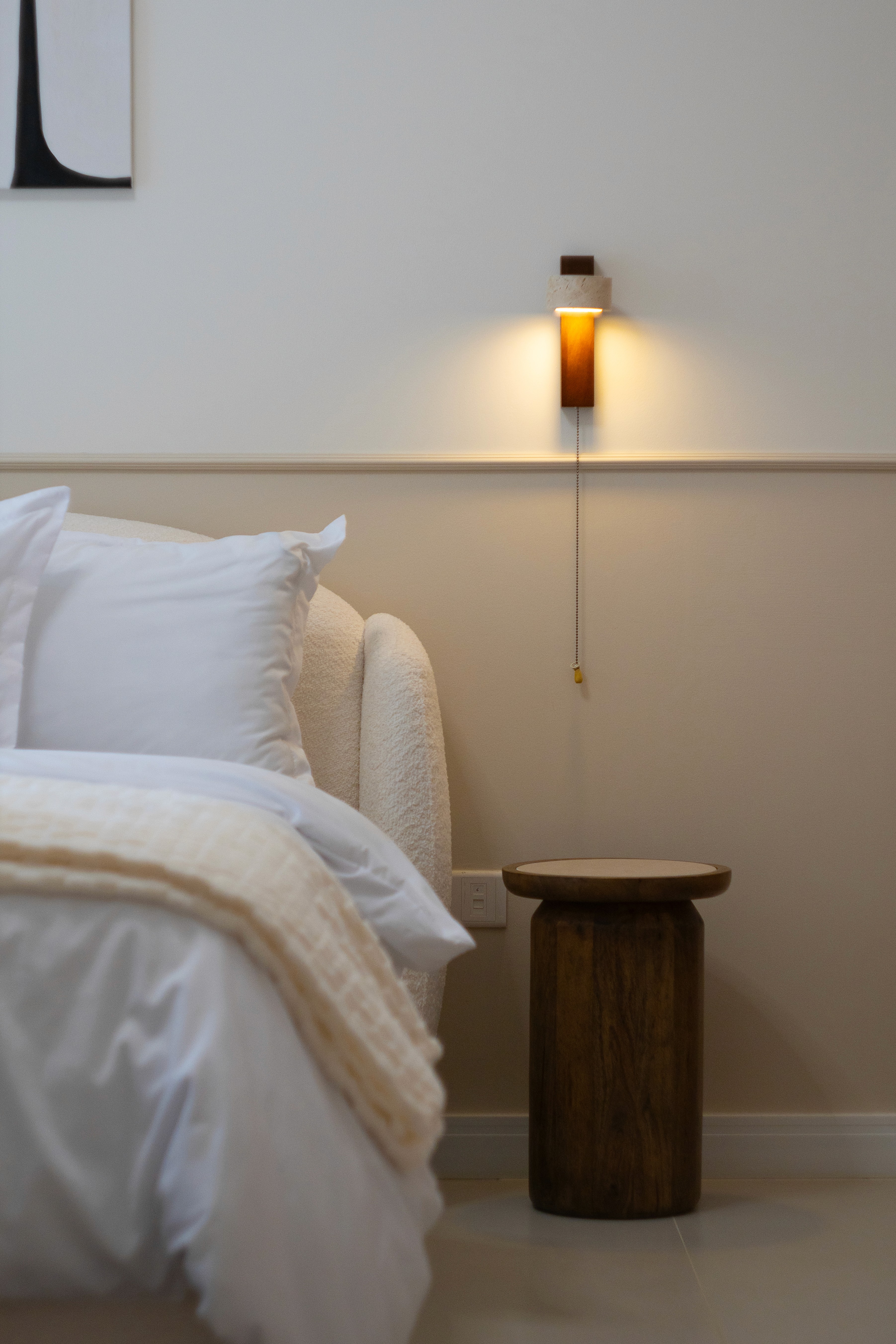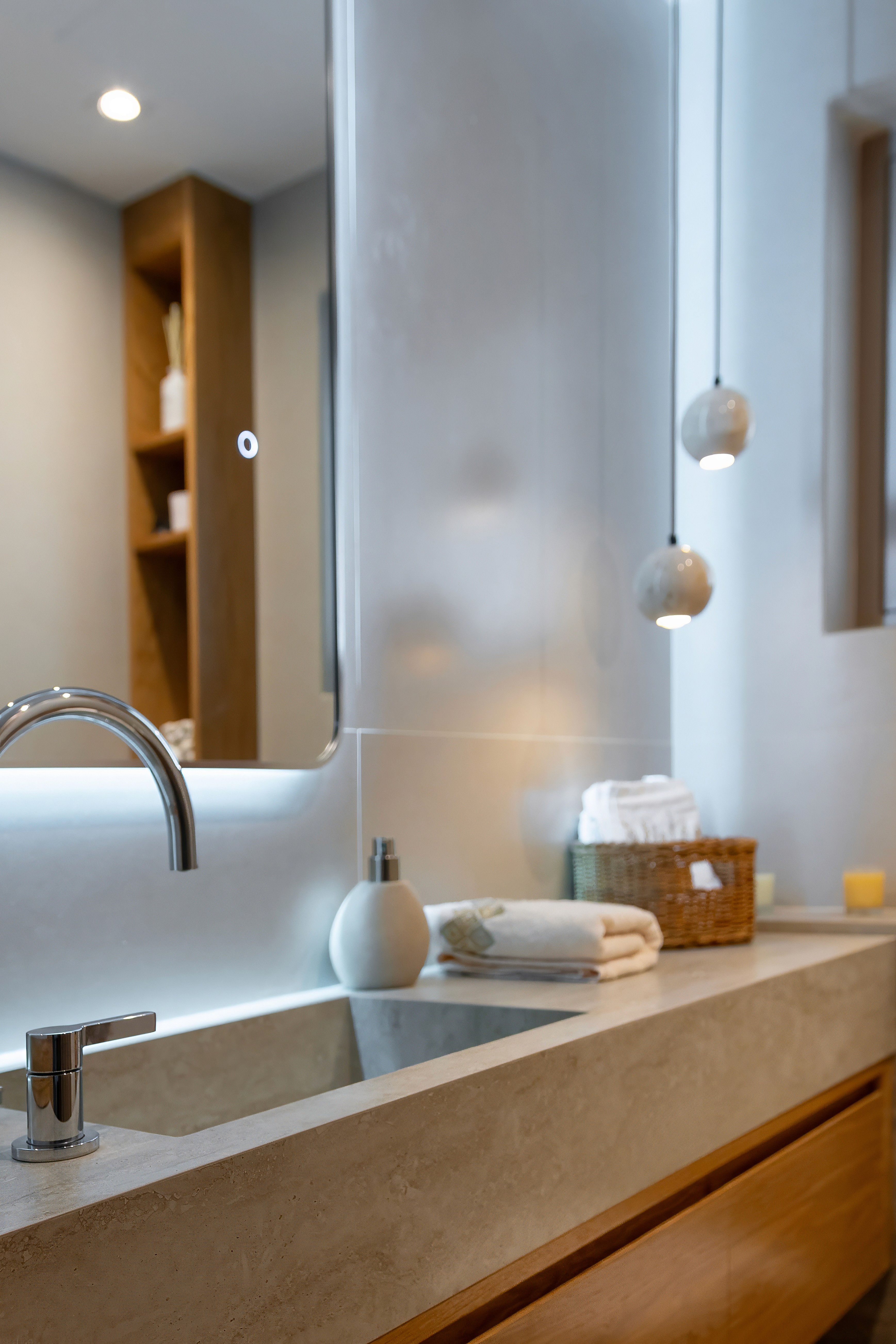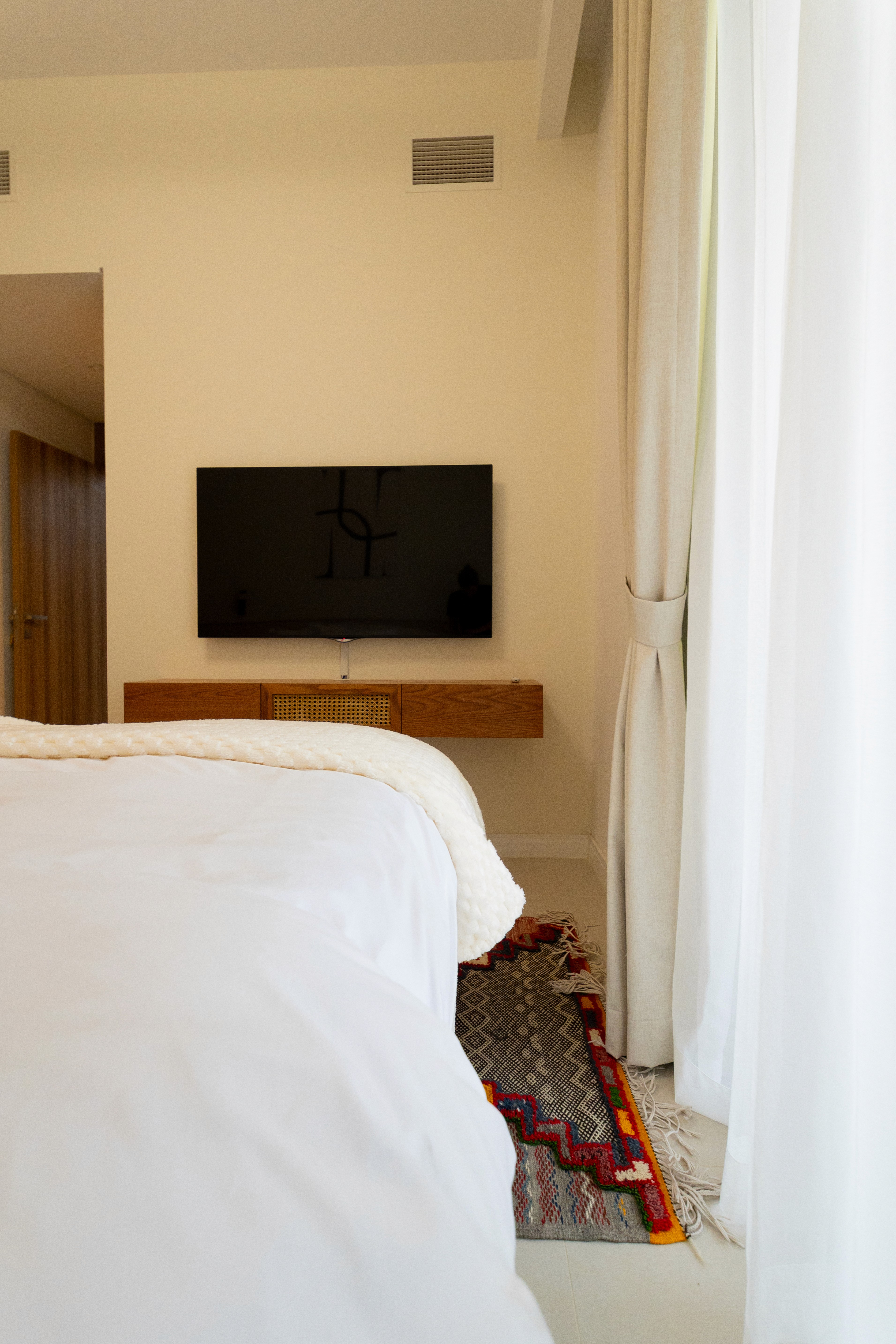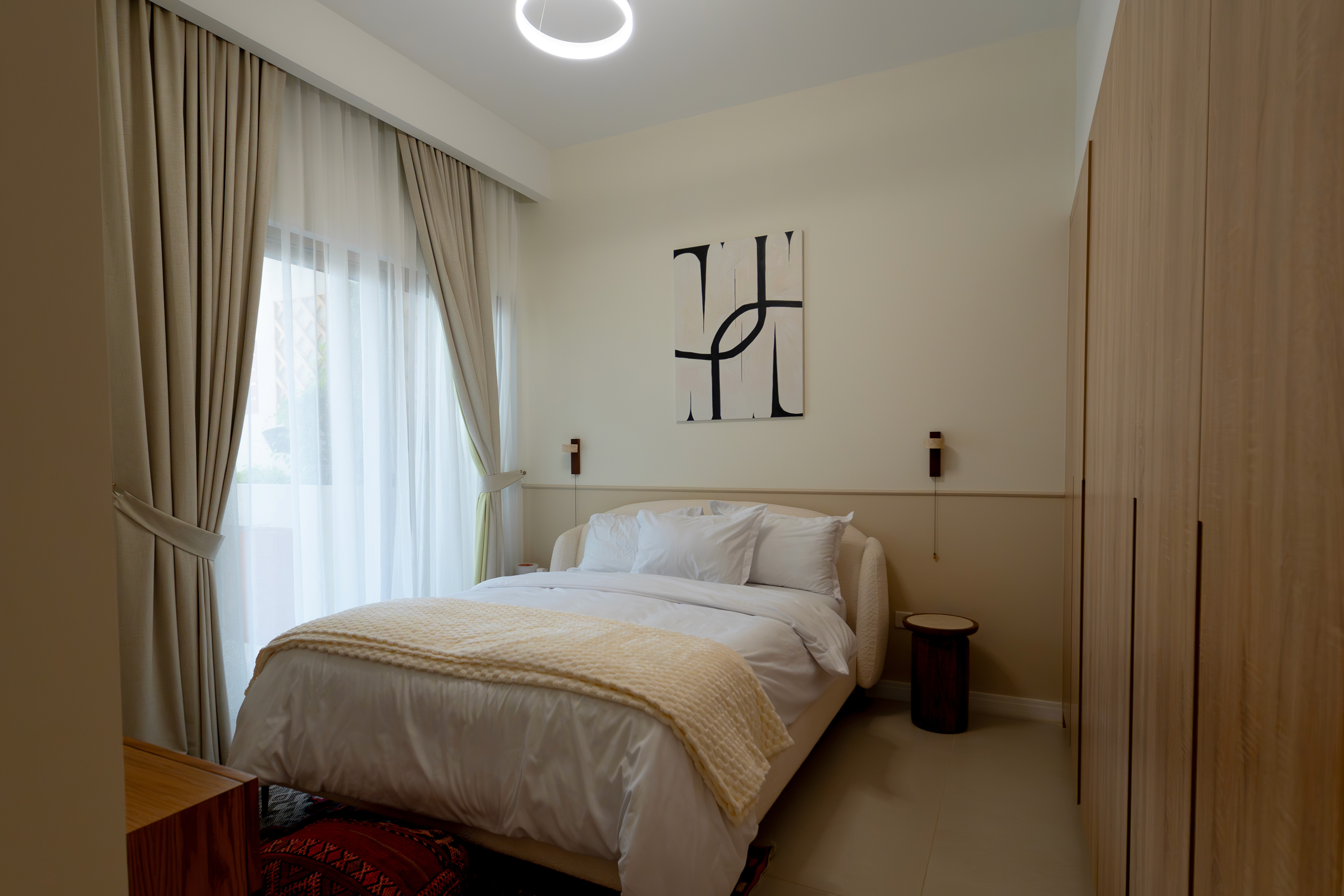 All custom furniture was designed specifically for this villa, allowing seamless integration with the architecture and interior flow. Built-in storage and bespoke joinery solutions maximised space while maintaining the minimalist design language throughout the property.
