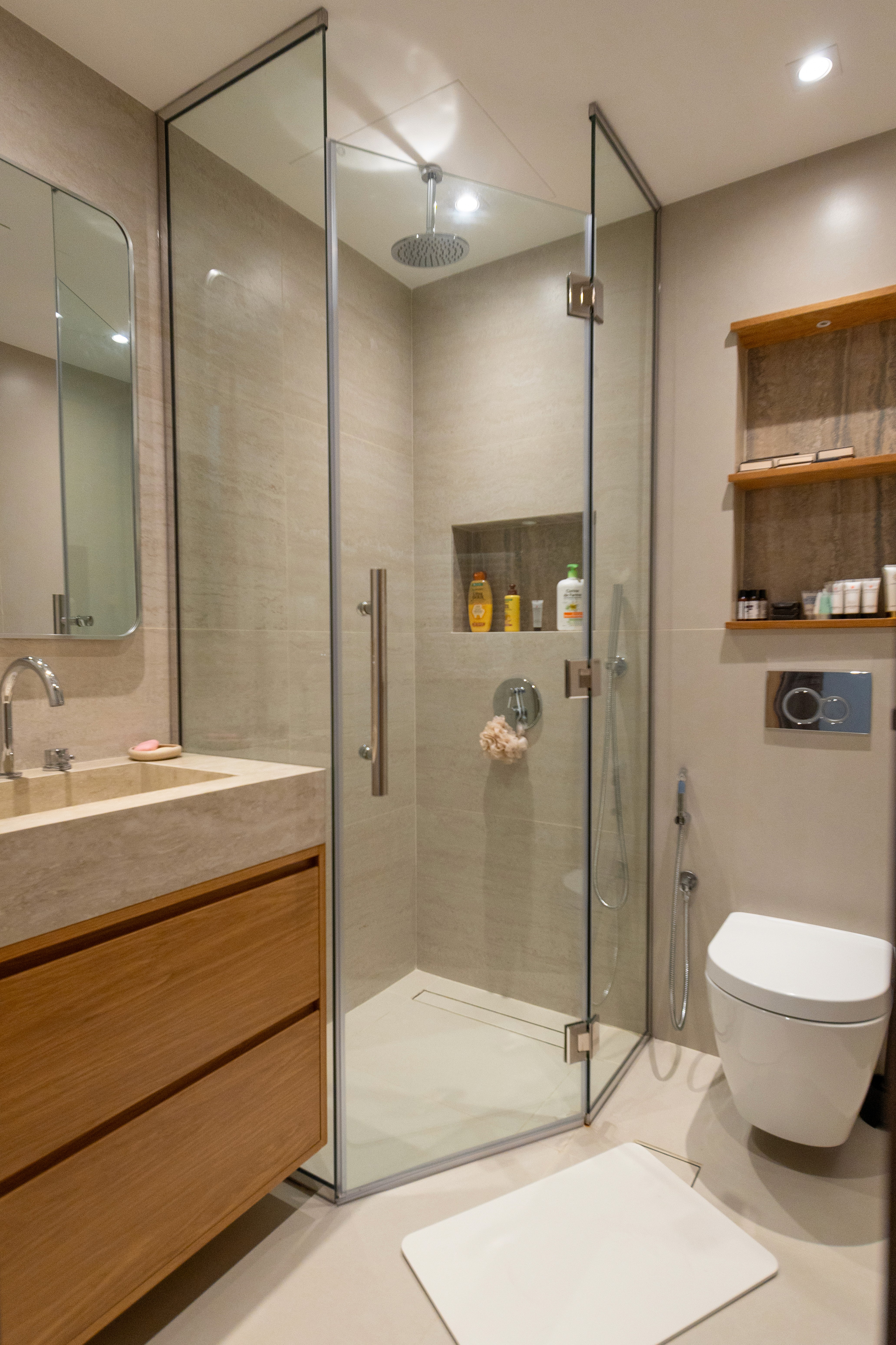 The kitchen was designed to be both practical and visually calm, using high-quality materials selected for durability and easy maintenance. Bathrooms were fully renovated with a focus on clean lines, efficient layouts, and long-term functionality — essential for a family-oriented villa renovation in Dubai.