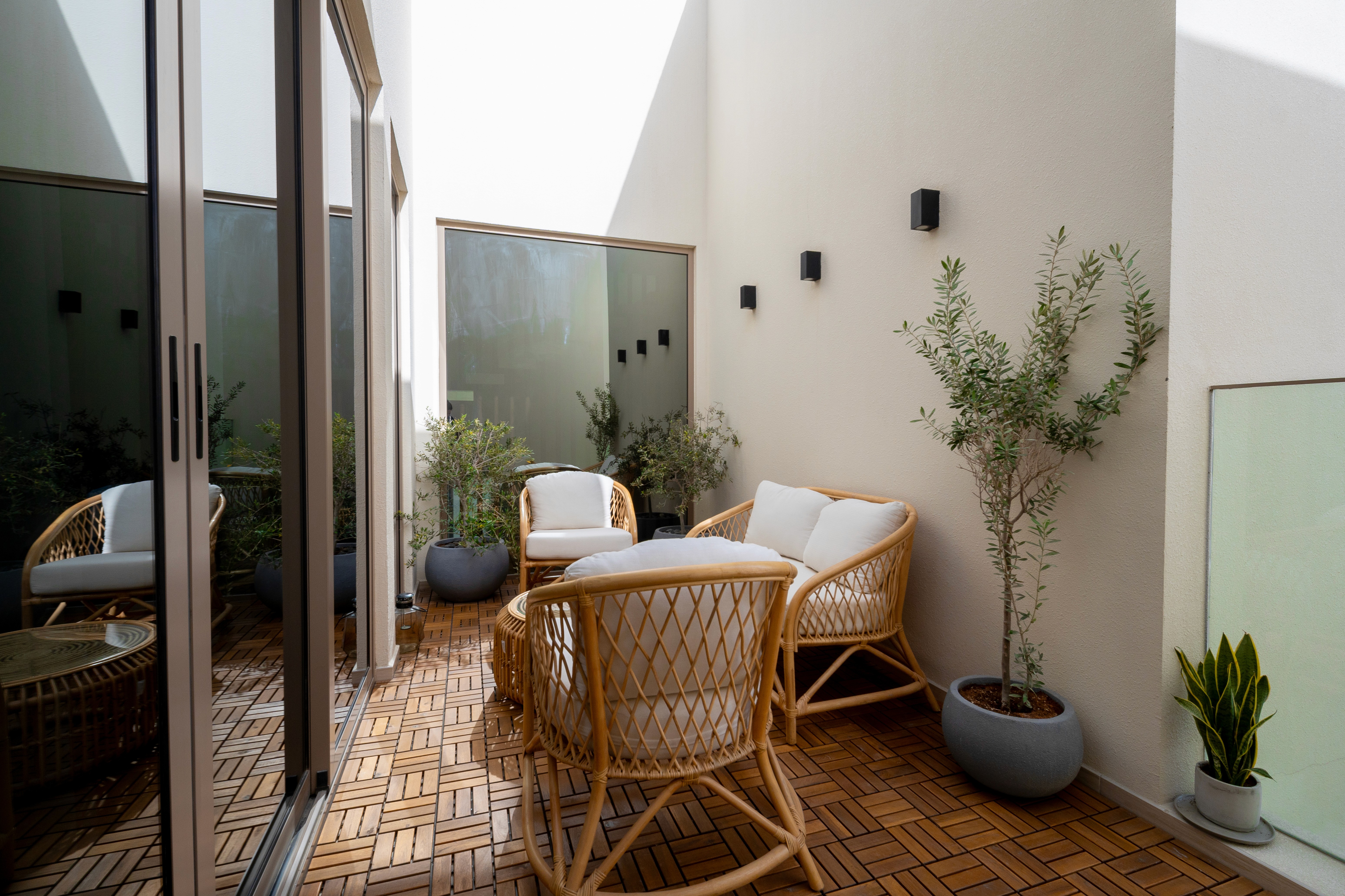 The outdoor area was treated as an extension of the interior space. Fitche delivered landscape design, hardscape works, and custom outdoor furniture, creating a comfortable environment for family gatherings and everyday use.